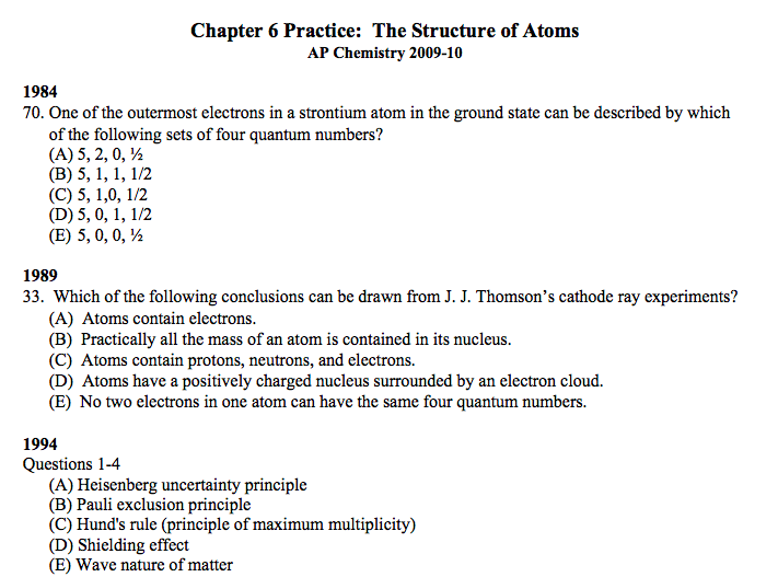 [AP Chem] 기출문제 모음_Chapter 6 The Structure of Atoms
