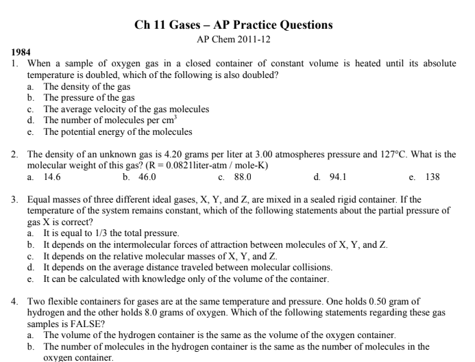 [AP Chem] 기출문제 모음_Chapter 11 Gases